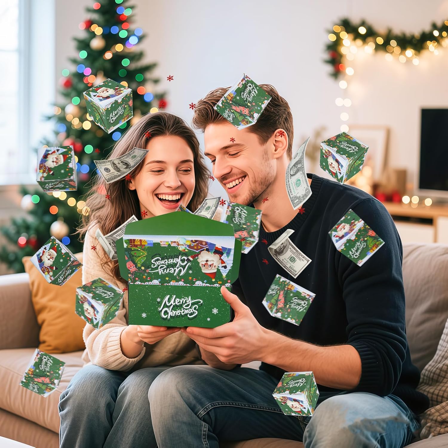 FUN way to give cash!!!!Tuck bills in between layers, top with provided confetti, fold lid down, put on sleeve to secure box...then watch the show when box is opened.You could put other lightweight items in between layers but cash is fun!Box could be reused and regifted.Everyone loved this gift surprise!